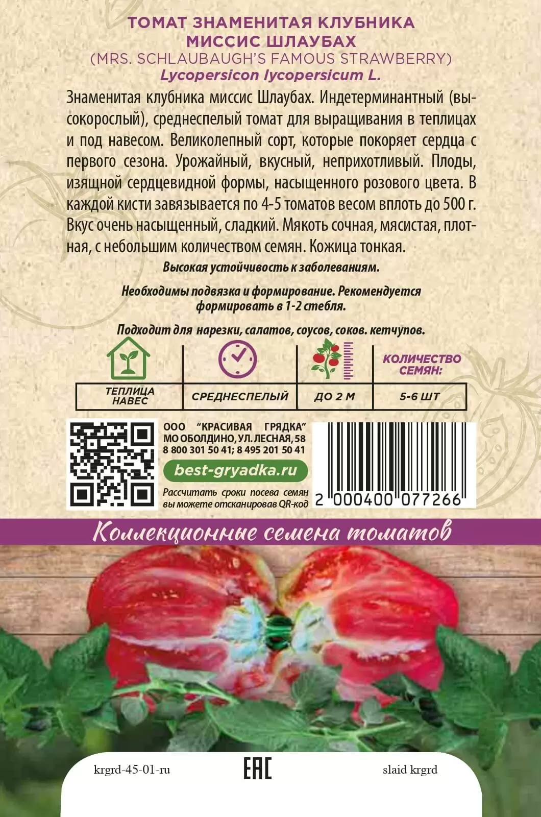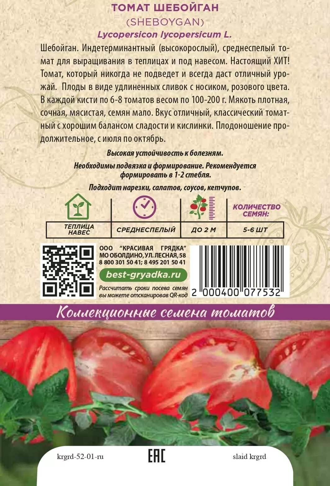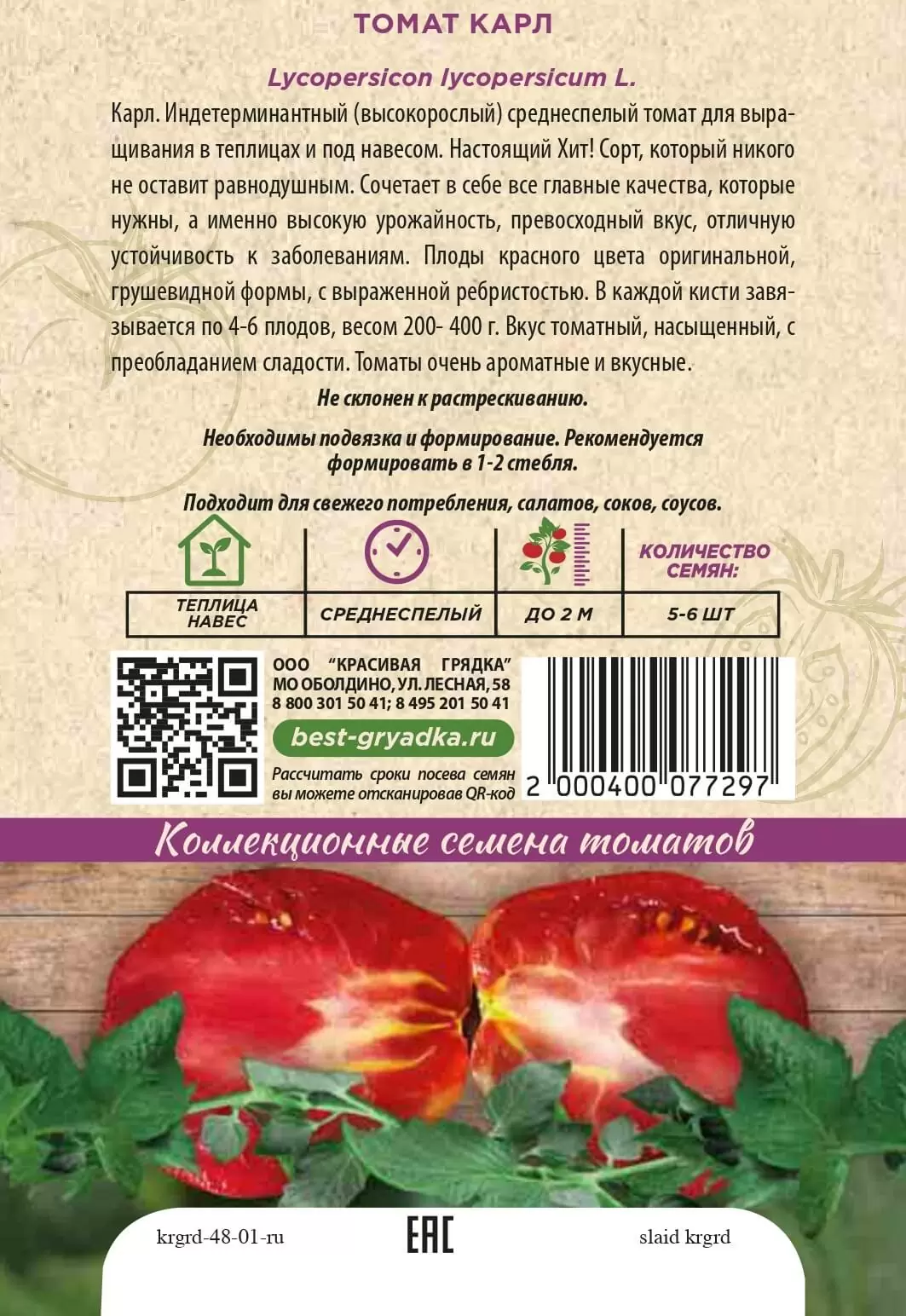 | Реквизиты | Товар, Запас, Коричневый, Сердце, Теплица, Сорт, Среднеспелый, Красивая Грядка, Индетерминантные, Коричневый, Сердце, Теплица, Сорт, Среднеспелый, Красивая Грядка, Индетерминантные |