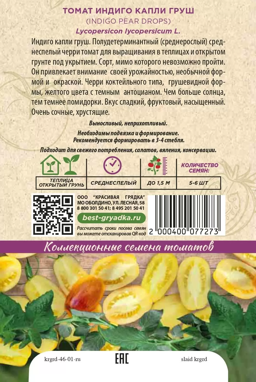 | Реквизиты | Товар, Запас, Цветные, Сливовидный, Теплица, Сорт, Среднеранний, Красивая Грядка, Индетерминантные, Цветные, Сливовидный, Теплица, Сорт, Среднеранний, Красивая Грядка, Индетерминантные |